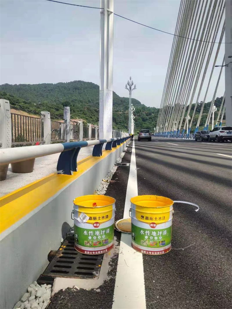 嘉麗士單組份丙烯酸水性地坪漆中黃色-羅江大橋-施工案例