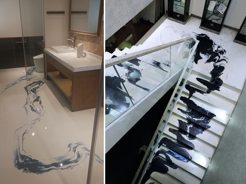 水墨畫地坪最大的特點(diǎn)就是可以將一些藝術(shù)圖案,通過(guò)潑墨的工藝應(yīng)用于地面當(dāng)中,讓整個(gè)地面充滿著藝術(shù)的氣息。水墨畫地坪蘊(yùn)藏著很多的中國(guó)元素,跟中式風(fēng)格的裝飾能起到很好的搭配。深深淺淺的顏色搭配,使地面顯得更為生動(dòng)。