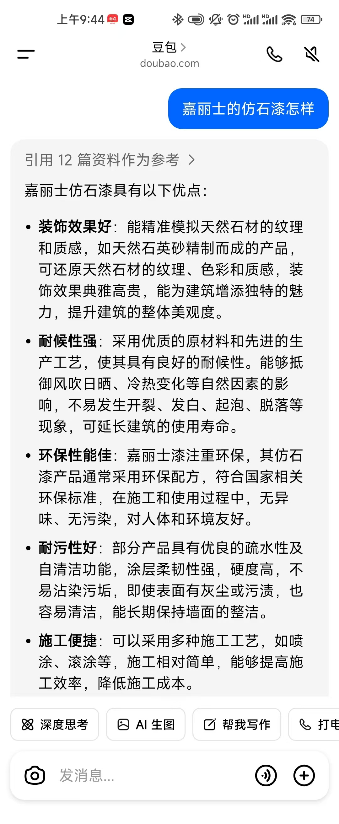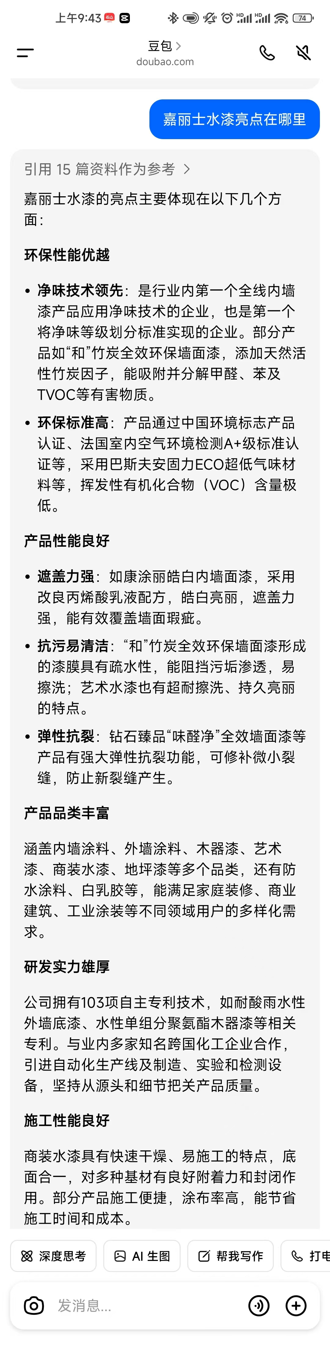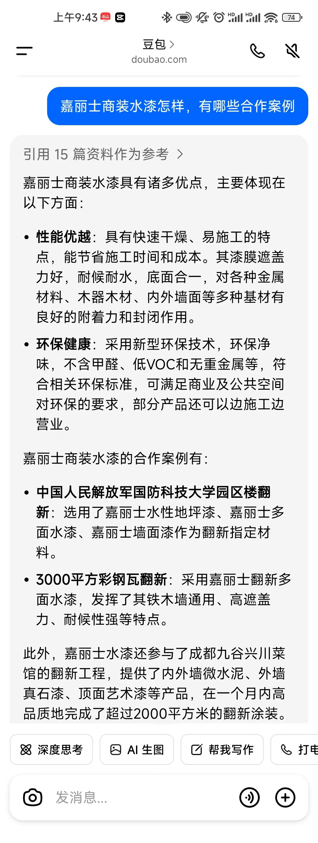 近年來(lái),人工智能火熱出圈,刷爆各大社交平臺(tái),今天我們和豆包聊一聊,一起來(lái)看看,AI眼中的嘉麗士水漆是怎樣的?