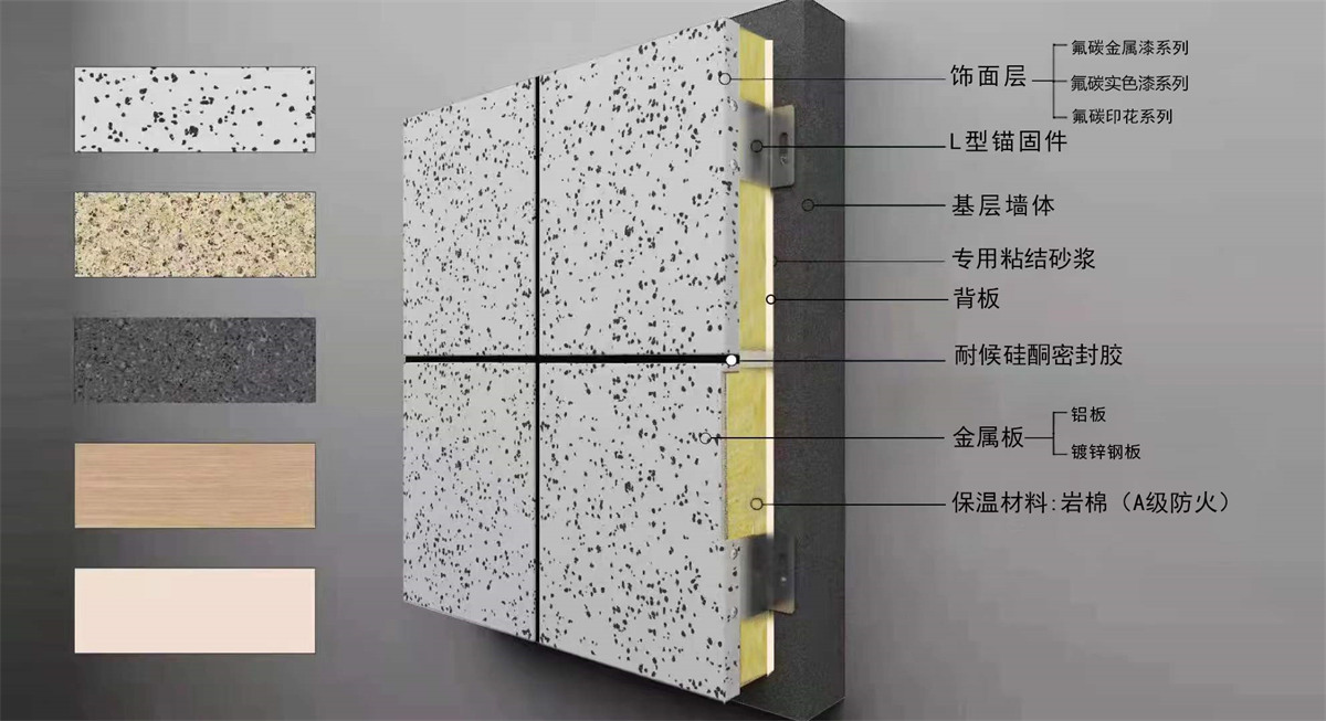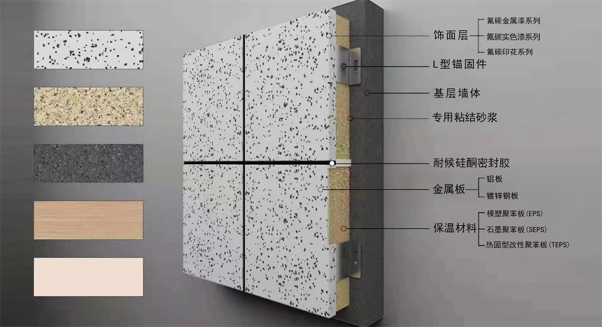 金屬板類保溫裝飾一體板是由鋁板或鍍鋅鋼板作為載體層,與保溫材料復(fù)合而成的集節(jié)能、裝飾為一體的裝飾板。
